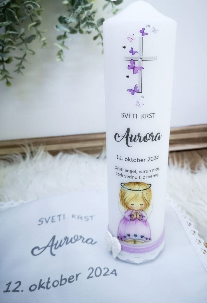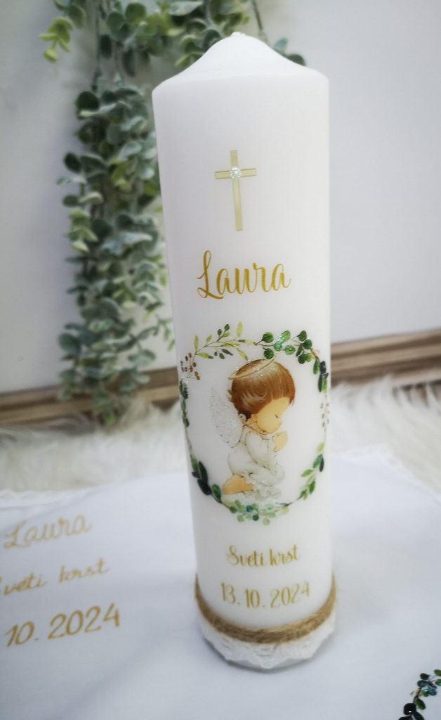 Krstna sveča samostoječa in krstni prtiček (cena kompleta je 44 €)Krstna sveča samostoječa in krstni prtiček (cena kompleta je 44 €)